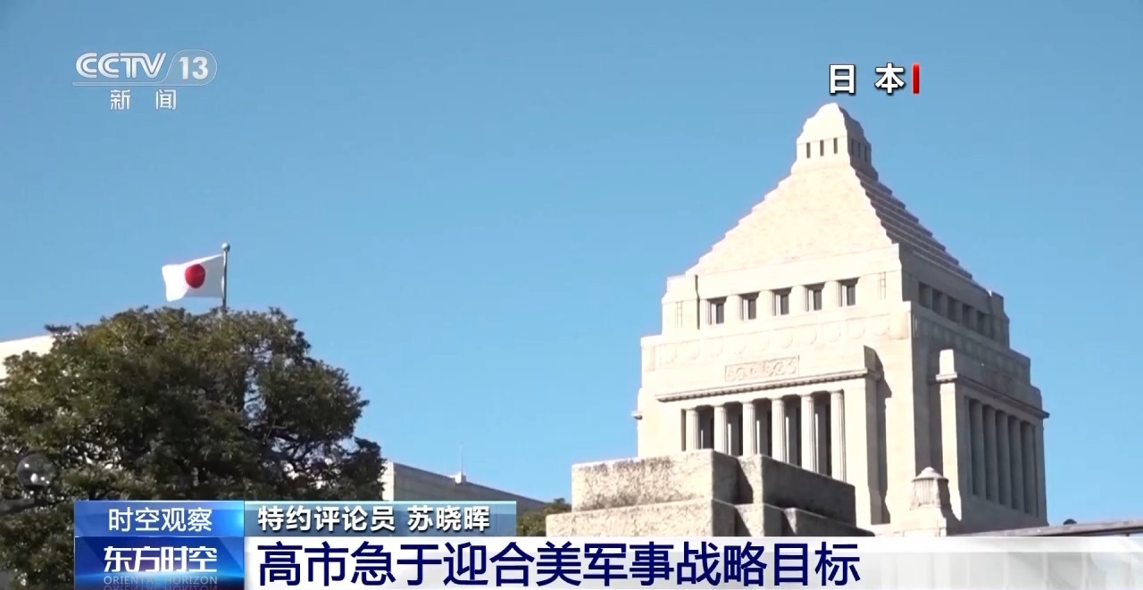 特约评论员 苏晓晖:此前我们分析过日本首相高市早苗发表涉台错误言论其险恶用心。高市显然在意图试探美方的反应,更是想拉美国下水。但是从结果来看,自高市发声以来,我们观察到美国政府官方表态相对谨慎,刻意与高市的言论在保持距离。日前美国总统特朗普与高市进行通话也颇有约束之意,在这样的一个背景之下,高市依然推进日本防卫费逐年连增,同时还实现较大的增幅,其背后的考量是试图迎合美国军事安全战略目标,绑定日美同盟关系。